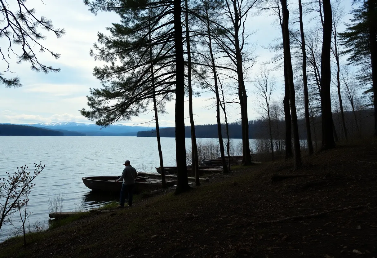A sad representation of a family vacation at a lake